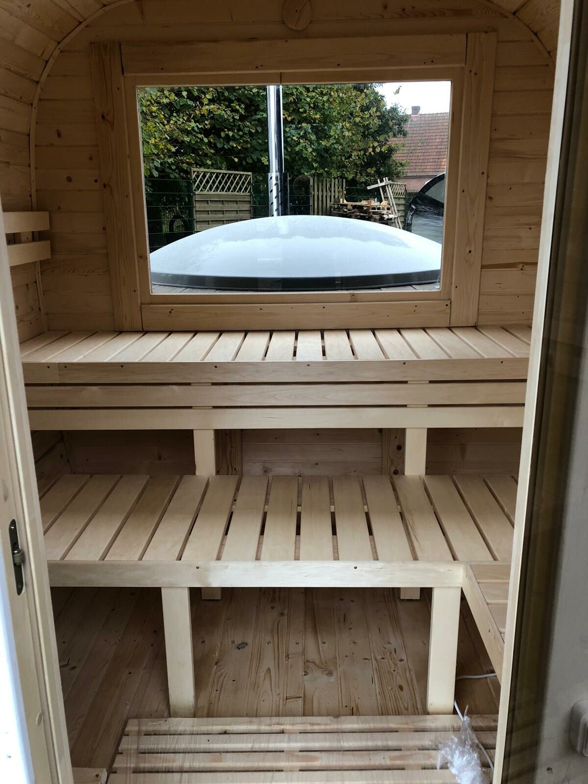 - Badezuber aus GFK mit Integrierte 35kW-Edelstahlofen (AISI 304 V2A)
